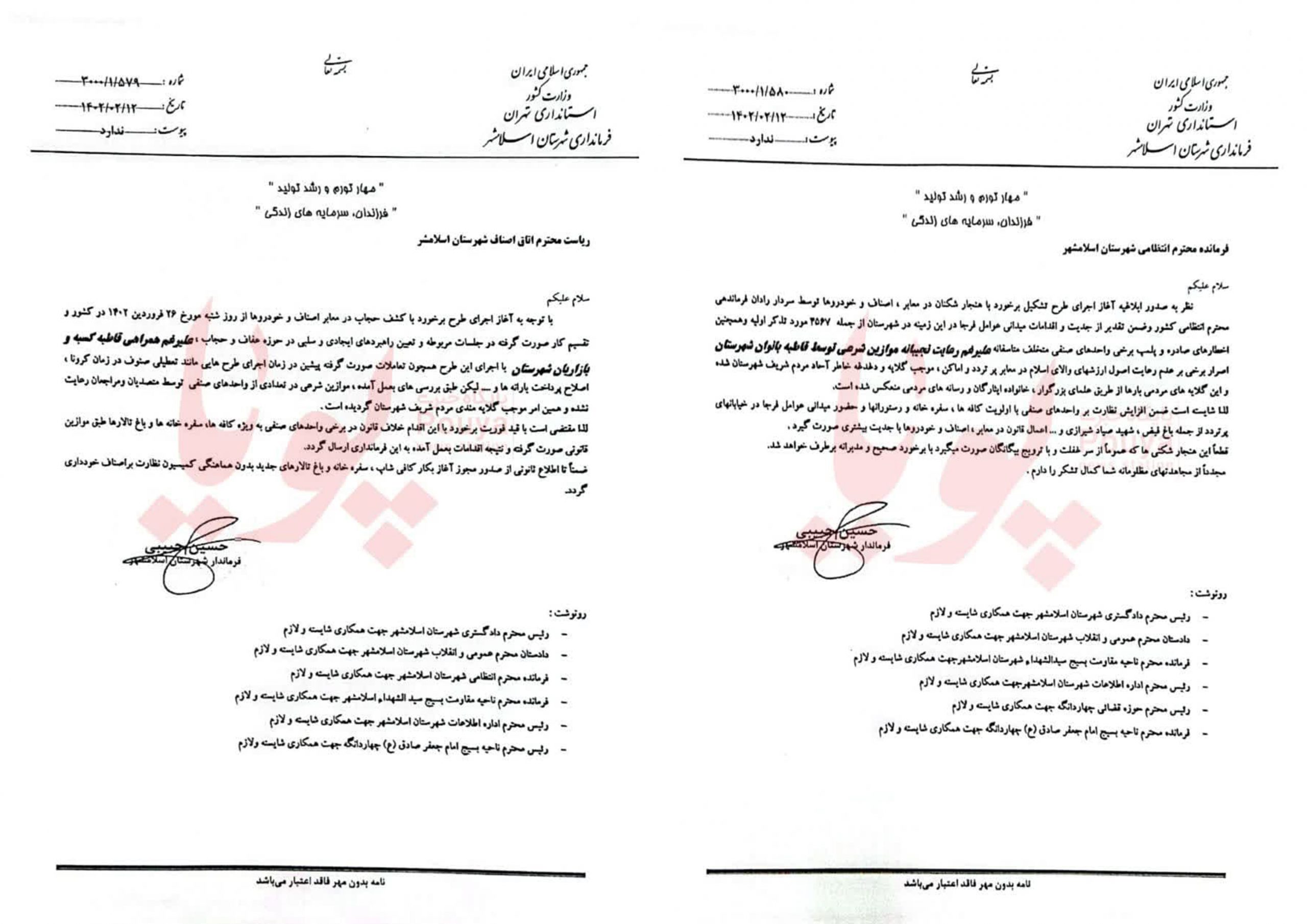 فرماندار اسلامشهر در بخشی از این نامه ها آورده است: علیرغم همراهی قاطبه کسبه و بازاریان شهرستان و همچنین رعایت نجیبانه موازین شرعی توسط قاطبه بانوان شهرستان، اصرار برخی بر عدم رعایت اصول ارزشهای والای اسلام در معابر پر تردد و اماکن موجب گلایه و دغدغه خاطر آحاد مردم شریف شده است.
